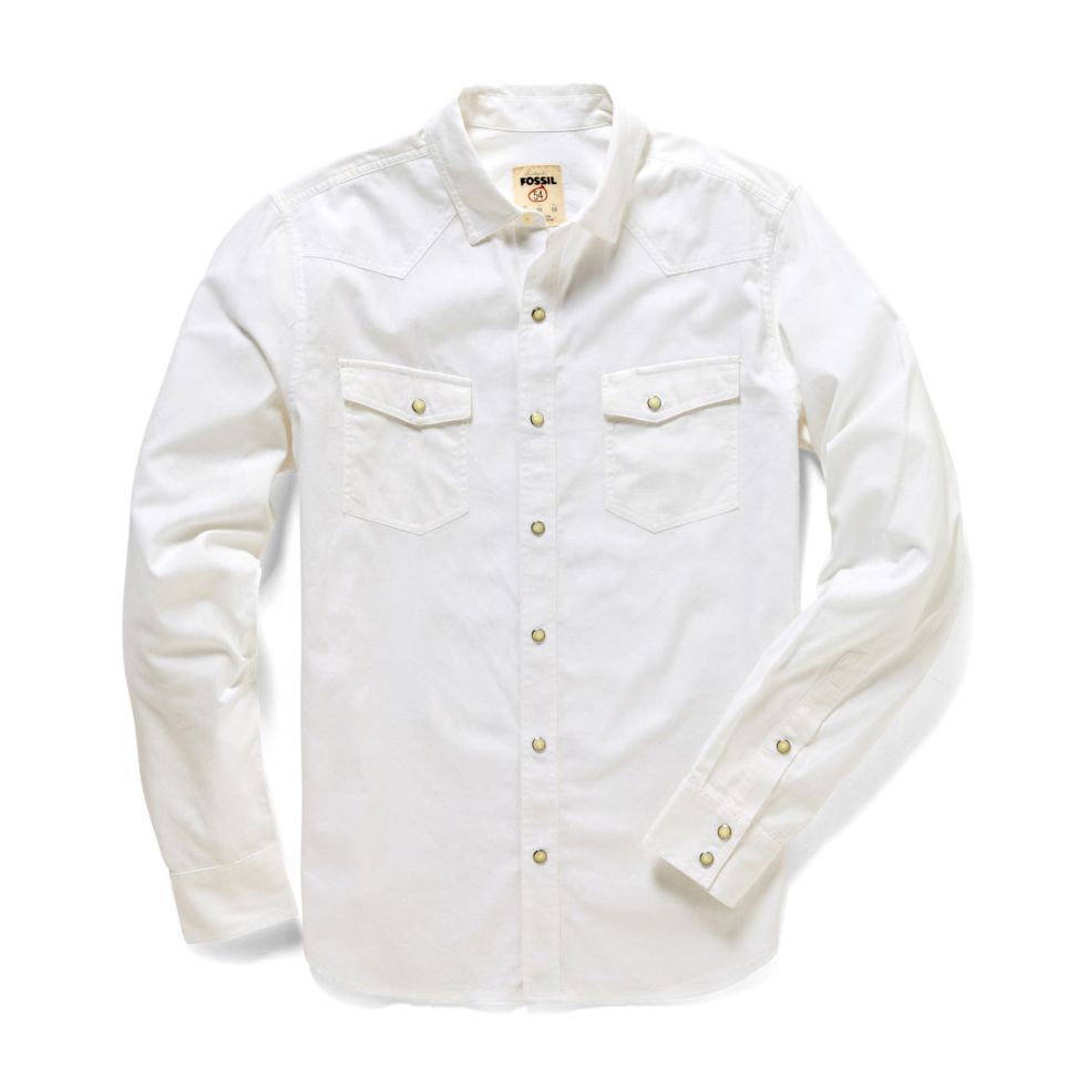 1. Old Navy – Navy pearl snap 2. Lucky Brand Orange Shirt 3. Fossil White shirt 4. American Eagle Plaid 5. Wrangler Pearl Snap